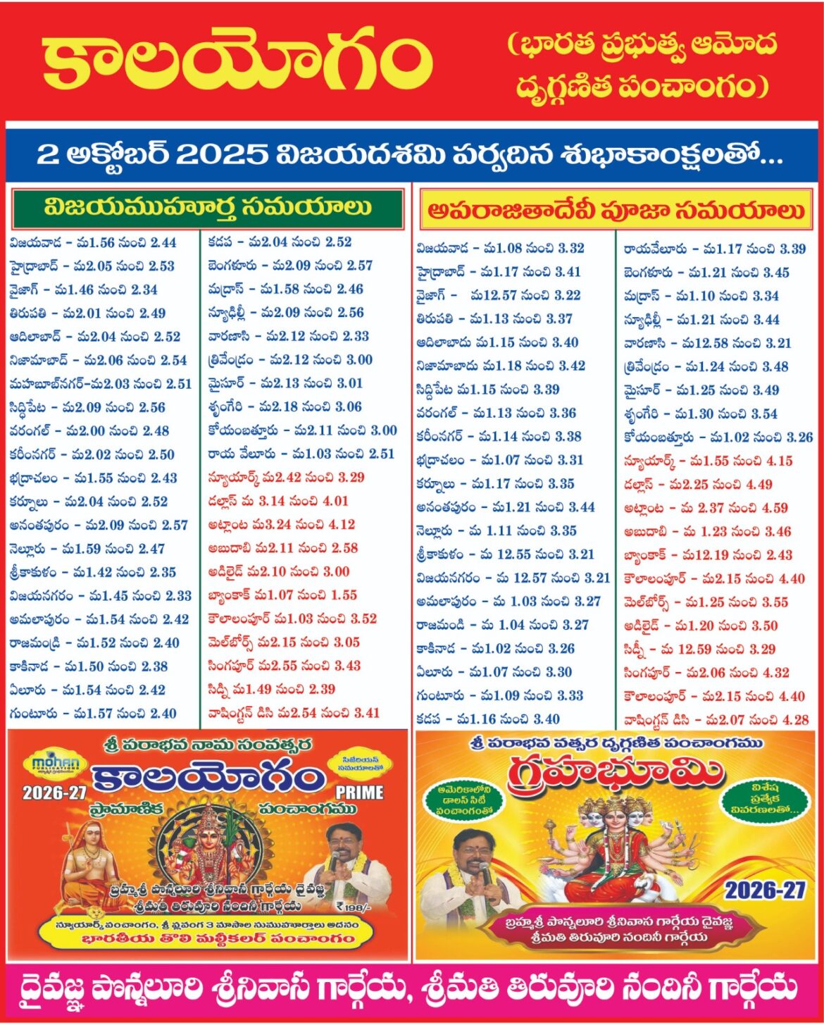 AstrologyLatestNitya Panchangam 2 october 2025 Dasara timings for all states by gargeyaastro September 30, 2025 written by gargeyaastro September 30, 2025 1.4K 0 comment 0 FacebookTwitterPinterestEmail gargeyaastro previous post For Appointments please contact 8341032385 next post panchangam from 6-10 oct 2025 You may also like గోదావరి పుష్కరాలకు ఇదే ఖచ్చిత తేదీ December 16, 2025 శ్రీ చంద్రబాబు నాయుడు గారికి ధన్యవాదములు December 16, 2025 ప్రపంచవ్యాప్తంగా 2 ఆగస్టు 2026 నుంచి భవిష్య ఉద్యోగాలకు గండి... December 16, 2025 please call to 83410 32385 విజయవాడ 2026 జనవరి... December 16, 2025 Panchangam From Dec 11-15 2025 December 14, 2025 Panchangam From Dec 6-10 2025 December 6, 2025 ప్రజలను గందరగోళంలోకి నెట్టిన ఆంధ్రప్రదేశ్ ప్రభుత్వ పండుగల లిస్ట్ December 6, 2025 కేంద్ర ప్రభుత్వ సెలవుల క్యాలెండర్ విడుదలైంది December 6, 2025 కేంద్ర ప్రభుత్వ సెలవుల క్యాలెండర్ విడుదలైంది December 6, 2025 పంచాంగాలలో ఇచ్చే ఆదాయ వ్యయ నిర్ణయాలనేవి ఓ గుడ్డి పద్ధతి December 6, 2025 Leave a Comment Cancel Reply Save my name, email, and website in this browser for the next time I comment.