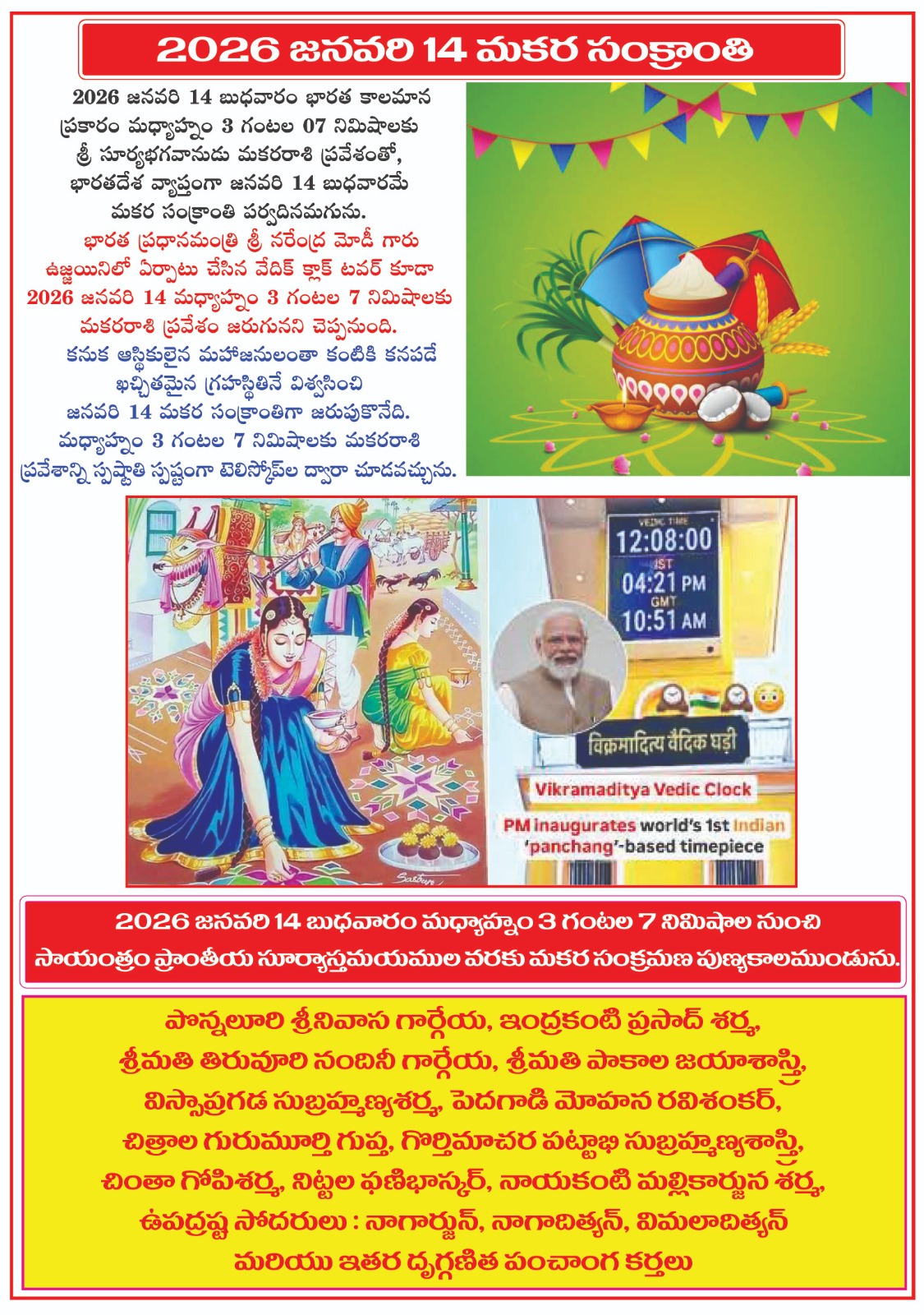 ArticlesAstrologyBlogsLatest 2026 january 14 th makara sankranti by gargeyaastro November 12, 2025 written by gargeyaastro November 12, 2025 478 0 comment 0 FacebookTwitterPinterestEmail gargeyaastro previous post 2026 kalayogam Prime calendar & mini calendars coming soon next post Panchangam from NOV 16-20 2025 You may also like గోదావరి పుష్కరాలకు ఇదే ఖచ్చిత తేదీ December 16, 2025 శ్రీ చంద్రబాబు నాయుడు గారికి ధన్యవాదములు December 16, 2025 ప్రపంచవ్యాప్తంగా 2 ఆగస్టు 2026 నుంచి భవిష్య ఉద్యోగాలకు గండి... December 16, 2025 please call to 83410 32385 విజయవాడ 2026 జనవరి... December 16, 2025 Panchangam From Dec 11-15 2025 December 14, 2025 Panchangam From Dec 6-10 2025 December 6, 2025 ప్రజలను గందరగోళంలోకి నెట్టిన ఆంధ్రప్రదేశ్ ప్రభుత్వ పండుగల లిస్ట్ December 6, 2025 కేంద్ర ప్రభుత్వ సెలవుల క్యాలెండర్ విడుదలైంది December 6, 2025 కేంద్ర ప్రభుత్వ సెలవుల క్యాలెండర్ విడుదలైంది December 6, 2025 పంచాంగాలలో ఇచ్చే ఆదాయ వ్యయ నిర్ణయాలనేవి ఓ గుడ్డి పద్ధతి December 6, 2025 Leave a Comment Cancel Reply Save my name, email, and website in this browser for the next time I comment.