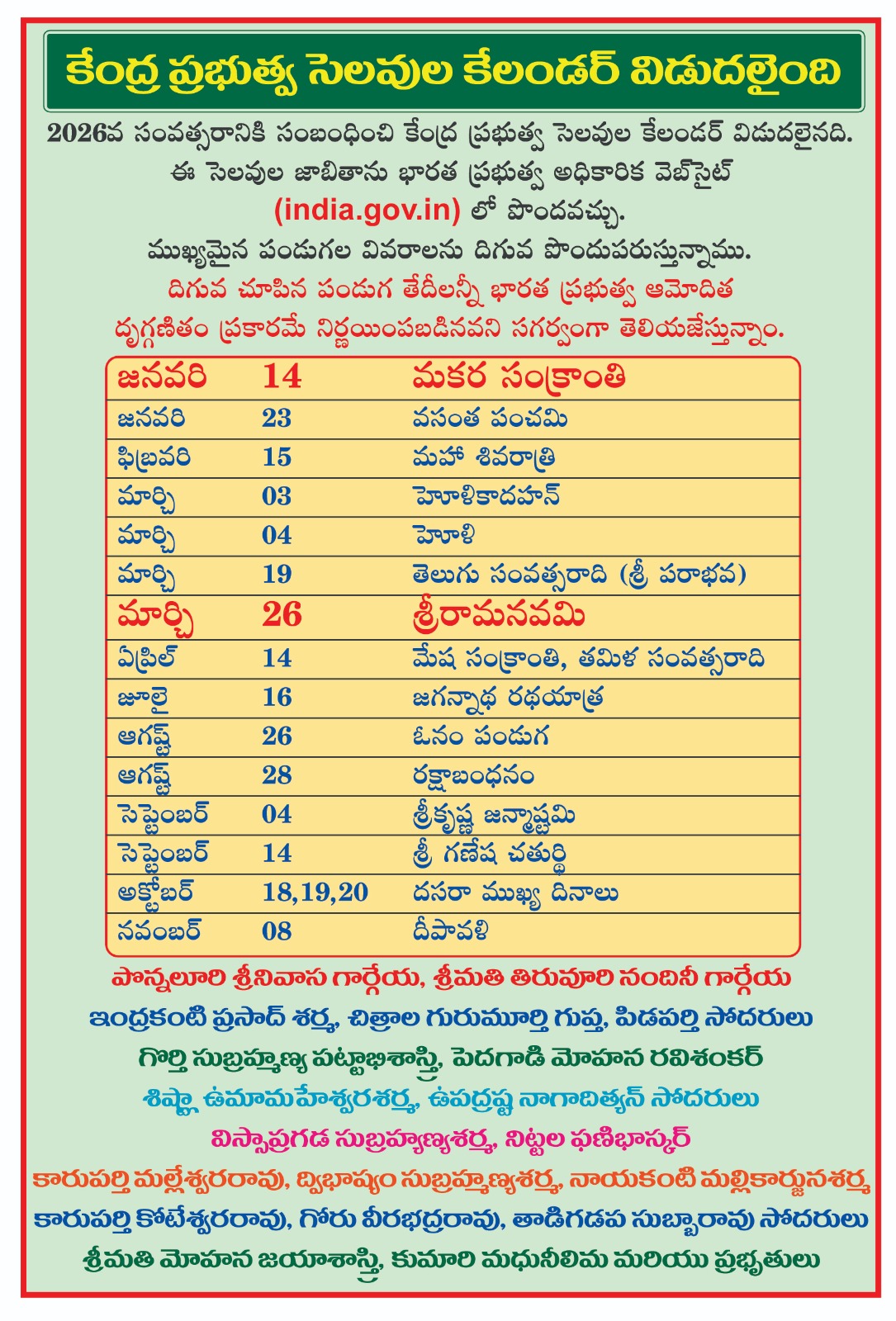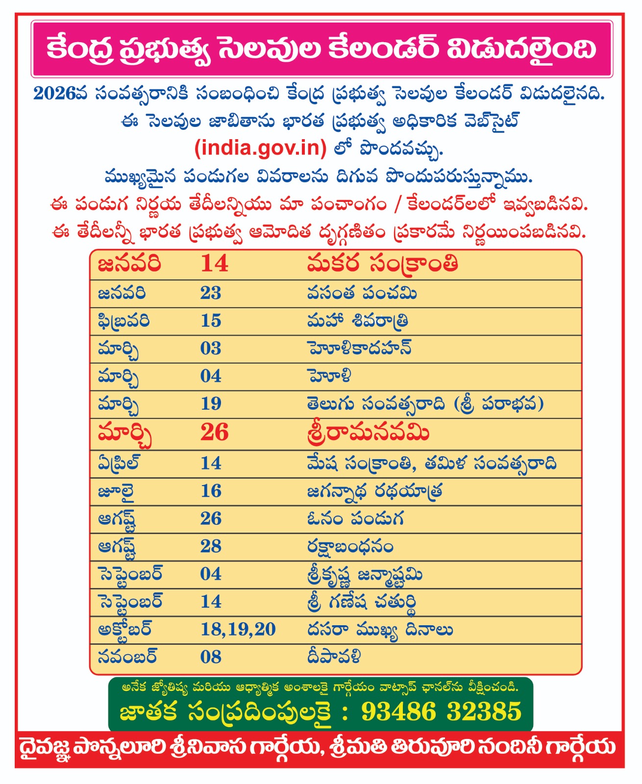 ArticlesAstrologyBlogsLatest కేంద్ర ప్రభుత్వ సెలవుల క్యాలెండర్ విడుదలైంది by gargeyaastro December 6, 2025 written by gargeyaastro December 6, 2025 0 comment 0 FacebookTwitterPinterestEmail