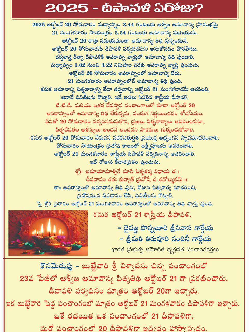 ArticlesAstrologyLatest DIWALI which day in 2025 ? by gargeyaastro October 13, 2025 written by gargeyaastro October 13, 2025 120 0 comment 1 FacebookTwitterPinterestEmail gargeyaastro previous post Panchangam from 11-15 0ct 2025 next post Pooja timings for 18,20,21 october 2025 You may also like Pooja timings for 18,20,21 october 2025 October 16, 2025 Panchangam from 11-15 0ct 2025 October 13, 2025 panchangam from 6-10 2025 October 3, 2025 2 october 2025 Dasara timings for all states September 30, 2025 For Appointments please contact 8341032385 September 30, 2025 Panchangam from 1-5 october 2025 September 30, 2025 For Appointments please contact 8341032385 September 23, 2025 For Appointments please contact 8341032385 September 23, 2025 2025-2033 these 8 years changes in the world September 23, 2025 For Appointments please contact 8341032385 September 23, 2025 Leave a Comment Cancel Reply Save my name, email, and website in this browser for the next time I comment.
