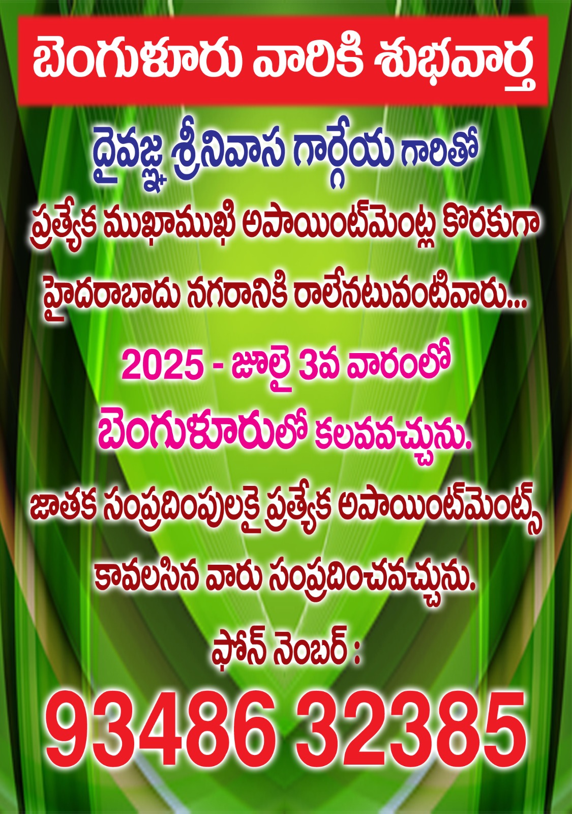 AstrologyLatestNitya Panchangam GOOD NEWS FOR BANGALORE PEOPLE by gargeyaastro June 20, 2025 written by gargeyaastro June 20, 2025 194 0 comment 0 FacebookTwitterPinterestEmail gargeyaastro previous post ALL ARE WELCOME next post ALL ARE WELCOME ON 25 TH JUNE 2025 You may also like Pooja timings for 18,20,21 october 2025 October 16, 2025 DIWALI which day in 2025 ? October 13, 2025 Panchangam from 11-15 0ct 2025 October 13, 2025 panchangam from 6-10 2025 October 3, 2025 2 october 2025 Dasara timings for all states September 30, 2025 For Appointments please contact 8341032385 September 30, 2025 Panchangam from 1-5 october 2025 September 30, 2025 For Appointments please contact 8341032385 September 23, 2025 For Appointments please contact 8341032385 September 23, 2025 2025-2033 these 8 years changes in the world September 23, 2025 Leave a Comment Cancel Reply Save my name, email, and website in this browser for the next time I comment.