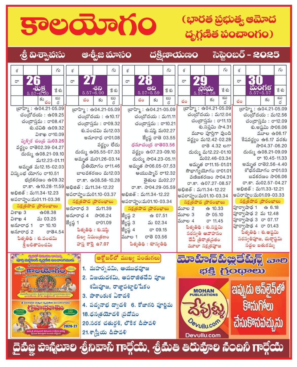 AstrologyLatestNitya Panchangam panchangam from 26-30 September 2025 by gargeyaastro September 16, 2025 written by gargeyaastro September 16, 2025 1.1K 0 comment 0 FacebookTwitterPinterestEmail gargeyaastro previous post panchangam from 21-25 September 2025 next post Trust yourself You may also like TO ORDER PANCHANGAM 2026-2027 PLEASE CALL TO 83410... April 5, 2026 Panchangam from 2026 APRIL 13-17 April 5, 2026 Panchangam from 2026 APRIL 8-12 April 5, 2026 Panchangam from 2026 APRIL 3-7 April 5, 2026 Panchangam from March 29- April 02 2026 March 29, 2026 Panchangam from march 24-28 2026 March 29, 2026 26 March 2026 March 15, 2026 శ్రీ పరాభవ కాలయోగం ప్రైమ్ పంచాంగం ఎప్పుడొస్తుంది ? March 14, 2026 Panchangam From March 19-23 2026 March 14, 2026 కుజ దోషము సంపూర్ణ వివరణ January 3, 2026 Leave a Comment Cancel Reply Save my name, email, and website in this browser for the next time I comment.
