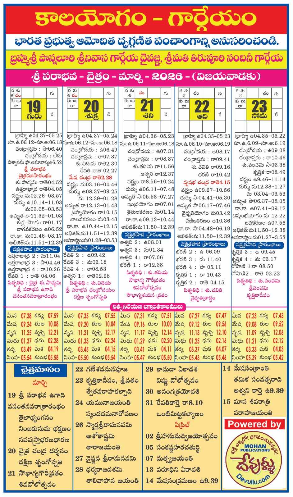 AstrologyLatestNitya Panchangam Panchangam From March 19-23 2026 by gargeyaastro March 14, 2026 written by gargeyaastro March 14, 2026 709 0 comment 0 FacebookTwitterPinterestEmail gargeyaastro previous post కుజ దోషము సంపూర్ణ వివరణ next post శ్రీ పరాభవ కాలయోగం ప్రైమ్ పంచాంగం ఎప్పుడొస్తుంది ? You may also like TO ORDER PANCHANGAM 2026-2027 PLEASE CALL TO 83410... April 5, 2026 Panchangam from 2026 APRIL 13-17 April 5, 2026 Panchangam from 2026 APRIL 8-12 April 5, 2026 Panchangam from 2026 APRIL 3-7 April 5, 2026 Panchangam from March 29- April 02 2026 March 29, 2026 Panchangam from march 24-28 2026 March 29, 2026 26 March 2026 March 15, 2026 శ్రీ పరాభవ కాలయోగం ప్రైమ్ పంచాంగం ఎప్పుడొస్తుంది ? March 14, 2026 కుజ దోషము సంపూర్ణ వివరణ January 3, 2026 2026 జనవరి, ఫిబ్రవరి ధనస్సు, మకరాలలో చాతుర్గ్రహ కూటములు 12... January 3, 2026 Leave a Comment Cancel Reply Save my name, email, and website in this browser for the next time I comment.