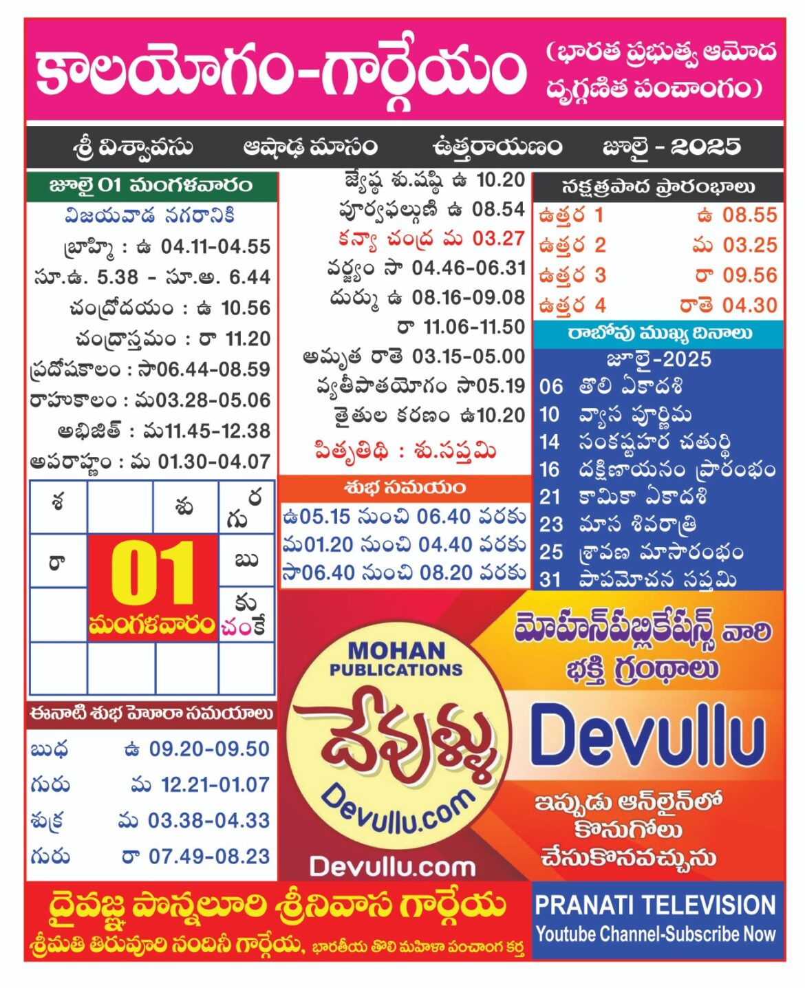 AstrologyLatestNitya Panchangam Panchangam on 01 July 2025 by gargeyaastro June 30, 2025 written by gargeyaastro June 30, 2025 432 0 comment 0 FacebookTwitterPinterestEmail gargeyaastro previous post Panchangam on 25 June 2025 next post Panchangam on 02 July 2025 You may also like గోదావరి పుష్కరాలకు ఇదే ఖచ్చిత తేదీ December 16, 2025 శ్రీ చంద్రబాబు నాయుడు గారికి ధన్యవాదములు December 16, 2025 ప్రపంచవ్యాప్తంగా 2 ఆగస్టు 2026 నుంచి భవిష్య ఉద్యోగాలకు గండి... December 16, 2025 please call to 83410 32385 విజయవాడ 2026 జనవరి... December 16, 2025 Panchangam From Dec 11-15 2025 December 14, 2025 Panchangam From Dec 6-10 2025 December 6, 2025 ప్రజలను గందరగోళంలోకి నెట్టిన ఆంధ్రప్రదేశ్ ప్రభుత్వ పండుగల లిస్ట్ December 6, 2025 కేంద్ర ప్రభుత్వ సెలవుల క్యాలెండర్ విడుదలైంది December 6, 2025 కేంద్ర ప్రభుత్వ సెలవుల క్యాలెండర్ విడుదలైంది December 6, 2025 పంచాంగాలలో ఇచ్చే ఆదాయ వ్యయ నిర్ణయాలనేవి ఓ గుడ్డి పద్ధతి December 6, 2025 Leave a Comment Cancel Reply Save my name, email, and website in this browser for the next time I comment.