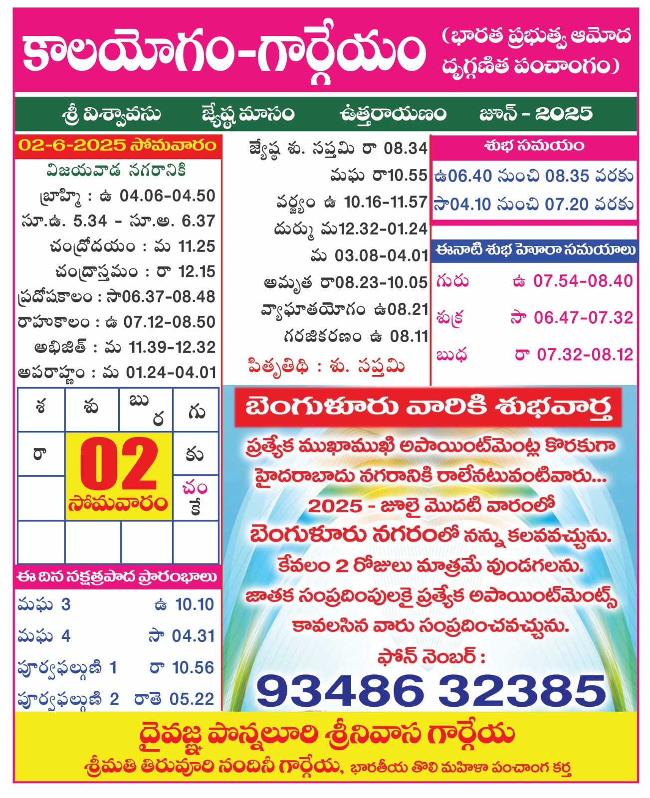 AstrologyLatestNitya Panchangam Panchangam on 02 JUNE 2025 by gargeyaastro May 28, 2025 written by gargeyaastro May 28, 2025 243 0 comment 0 FacebookTwitterPinterestEmail gargeyaastro previous post Panchangam on 01 JUNE 2025 next post GOOD NEWS FOR BANGLORE PEOPLE You may also like Pooja timings for 18,20,21 october 2025 October 16, 2025 DIWALI which day in 2025 ? October 13, 2025 Panchangam from 11-15 0ct 2025 October 13, 2025 panchangam from 6-10 2025 October 3, 2025 2 october 2025 Dasara timings for all states September 30, 2025 For Appointments please contact 8341032385 September 30, 2025 Panchangam from 1-5 october 2025 September 30, 2025 For Appointments please contact 8341032385 September 23, 2025 For Appointments please contact 8341032385 September 23, 2025 2025-2033 these 8 years changes in the world September 23, 2025 Leave a Comment Cancel Reply Save my name, email, and website in this browser for the next time I comment.