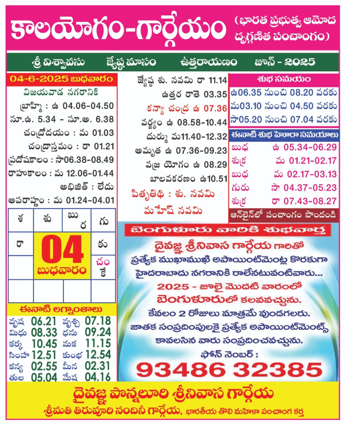 AstrologyLatestNitya Panchangam Panchangam on 04 June 2025 by gargeyaastro June 6, 2025 written by gargeyaastro June 6, 2025 166 0 comment 0 FacebookTwitterPinterestEmail gargeyaastro previous post Panchangam on 03 June 2025 next post Panchangam on 05 June 2025 You may also like గోదావరి పుష్కరాలకు ఇదే ఖచ్చిత తేదీ December 16, 2025 శ్రీ చంద్రబాబు నాయుడు గారికి ధన్యవాదములు December 16, 2025 ప్రపంచవ్యాప్తంగా 2 ఆగస్టు 2026 నుంచి భవిష్య ఉద్యోగాలకు గండి... December 16, 2025 please call to 83410 32385 విజయవాడ 2026 జనవరి... December 16, 2025 Panchangam From Dec 11-15 2025 December 14, 2025 Panchangam From Dec 6-10 2025 December 6, 2025 ప్రజలను గందరగోళంలోకి నెట్టిన ఆంధ్రప్రదేశ్ ప్రభుత్వ పండుగల లిస్ట్ December 6, 2025 కేంద్ర ప్రభుత్వ సెలవుల క్యాలెండర్ విడుదలైంది December 6, 2025 కేంద్ర ప్రభుత్వ సెలవుల క్యాలెండర్ విడుదలైంది December 6, 2025 పంచాంగాలలో ఇచ్చే ఆదాయ వ్యయ నిర్ణయాలనేవి ఓ గుడ్డి పద్ధతి December 6, 2025 Leave a Comment Cancel Reply Save my name, email, and website in this browser for the next time I comment.