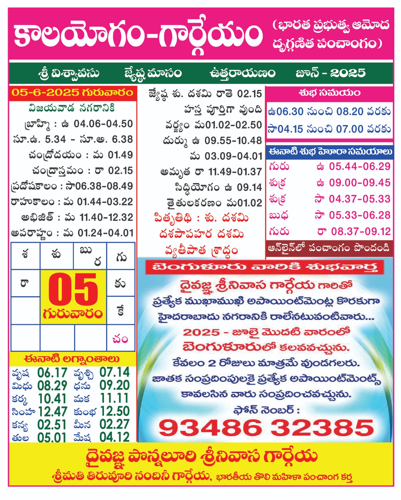 AstrologyLatestNitya Panchangam Panchangam on 05 June 2025 by gargeyaastro June 6, 2025 written by gargeyaastro June 6, 2025 140 0 comment 0 FacebookTwitterPinterestEmail gargeyaastro previous post Panchangam on 04 June 2025 next post Panchangam on 06 June 2025 You may also like Pooja timings for 18,20,21 october 2025 October 16, 2025 DIWALI which day in 2025 ? October 13, 2025 Panchangam from 11-15 0ct 2025 October 13, 2025 panchangam from 6-10 2025 October 3, 2025 2 october 2025 Dasara timings for all states September 30, 2025 For Appointments please contact 8341032385 September 30, 2025 Panchangam from 1-5 october 2025 September 30, 2025 For Appointments please contact 8341032385 September 23, 2025 For Appointments please contact 8341032385 September 23, 2025 2025-2033 these 8 years changes in the world September 23, 2025 Leave a Comment Cancel Reply Save my name, email, and website in this browser for the next time I comment.