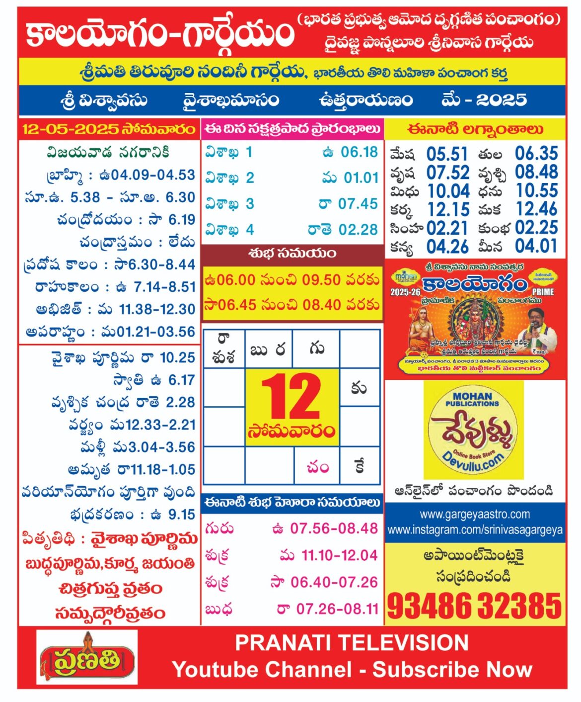 AstrologyLatestNitya Panchangam Panchangam on 12 MAY 2025 by gargeyaastro May 9, 2025 written by gargeyaastro May 9, 2025 234 0 comment 0 FacebookTwitterPinterestEmail gargeyaastro previous post Panchangam on 11 MAY 2025 next post Panchangam on 13 MAY 2025 You may also like గోదావరి పుష్కరాలకు ఇదే ఖచ్చిత తేదీ December 16, 2025 శ్రీ చంద్రబాబు నాయుడు గారికి ధన్యవాదములు December 16, 2025 ప్రపంచవ్యాప్తంగా 2 ఆగస్టు 2026 నుంచి భవిష్య ఉద్యోగాలకు గండి... December 16, 2025 please call to 83410 32385 విజయవాడ 2026 జనవరి... December 16, 2025 Panchangam From Dec 11-15 2025 December 14, 2025 Panchangam From Dec 6-10 2025 December 6, 2025 ప్రజలను గందరగోళంలోకి నెట్టిన ఆంధ్రప్రదేశ్ ప్రభుత్వ పండుగల లిస్ట్ December 6, 2025 కేంద్ర ప్రభుత్వ సెలవుల క్యాలెండర్ విడుదలైంది December 6, 2025 కేంద్ర ప్రభుత్వ సెలవుల క్యాలెండర్ విడుదలైంది December 6, 2025 పంచాంగాలలో ఇచ్చే ఆదాయ వ్యయ నిర్ణయాలనేవి ఓ గుడ్డి పద్ధతి December 6, 2025 Leave a Comment Cancel Reply Save my name, email, and website in this browser for the next time I comment.