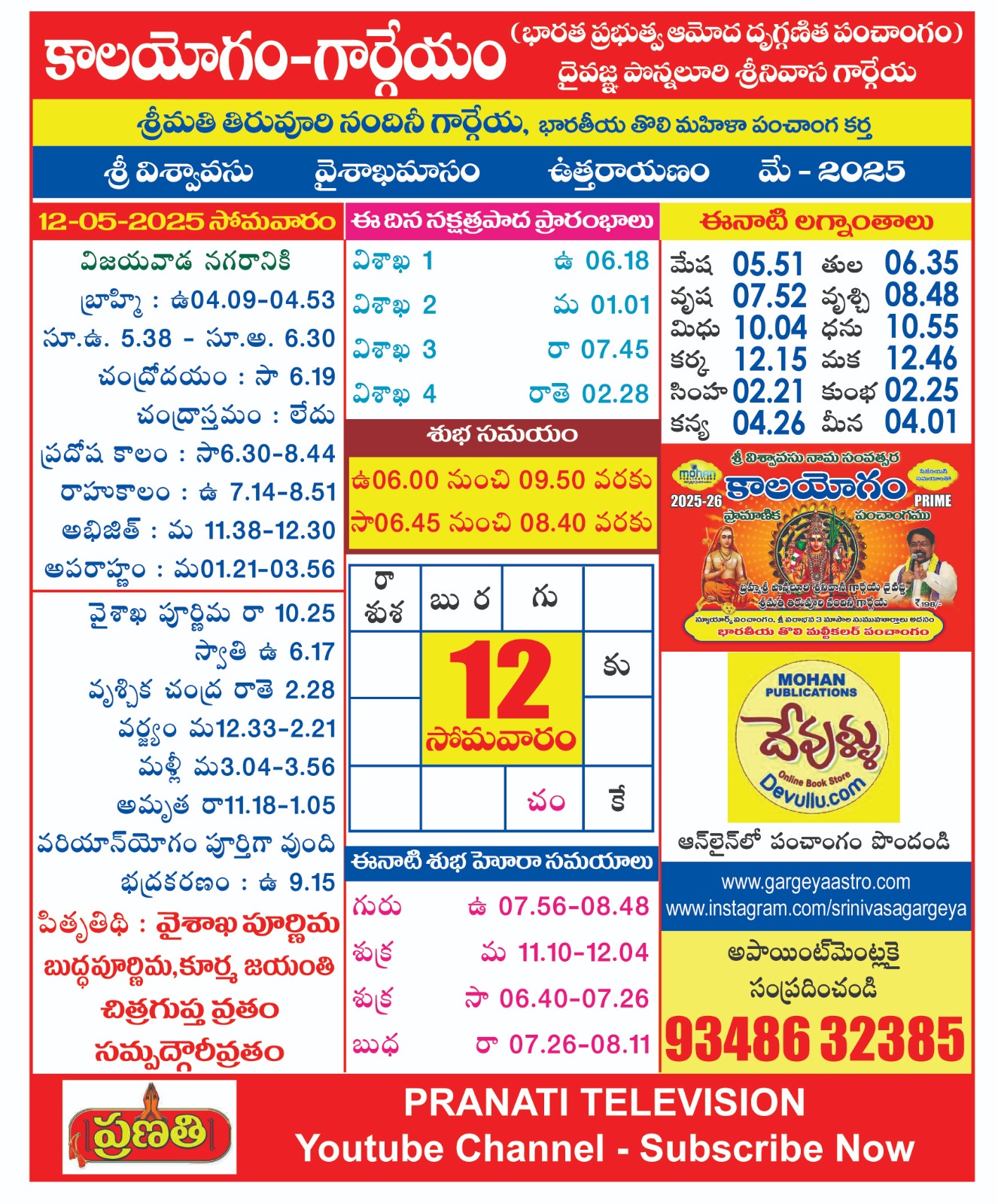 AstrologyLatestNitya Panchangam Panchangam on 12 MAY 2025 by gargeyaastro May 9, 2025 written by gargeyaastro May 9, 2025 185 0 comment 0 FacebookTwitterPinterestEmail gargeyaastro previous post Panchangam on 11 MAY 2025 next post Panchangam on 13 MAY 2025 You may also like Pooja timings for 18,20,21 october 2025 October 16, 2025 DIWALI which day in 2025 ? October 13, 2025 Panchangam from 11-15 0ct 2025 October 13, 2025 panchangam from 6-10 2025 October 3, 2025 2 october 2025 Dasara timings for all states September 30, 2025 For Appointments please contact 8341032385 September 30, 2025 Panchangam from 1-5 october 2025 September 30, 2025 For Appointments please contact 8341032385 September 23, 2025 For Appointments please contact 8341032385 September 23, 2025 2025-2033 these 8 years changes in the world September 23, 2025 Leave a Comment Cancel Reply Save my name, email, and website in this browser for the next time I comment.