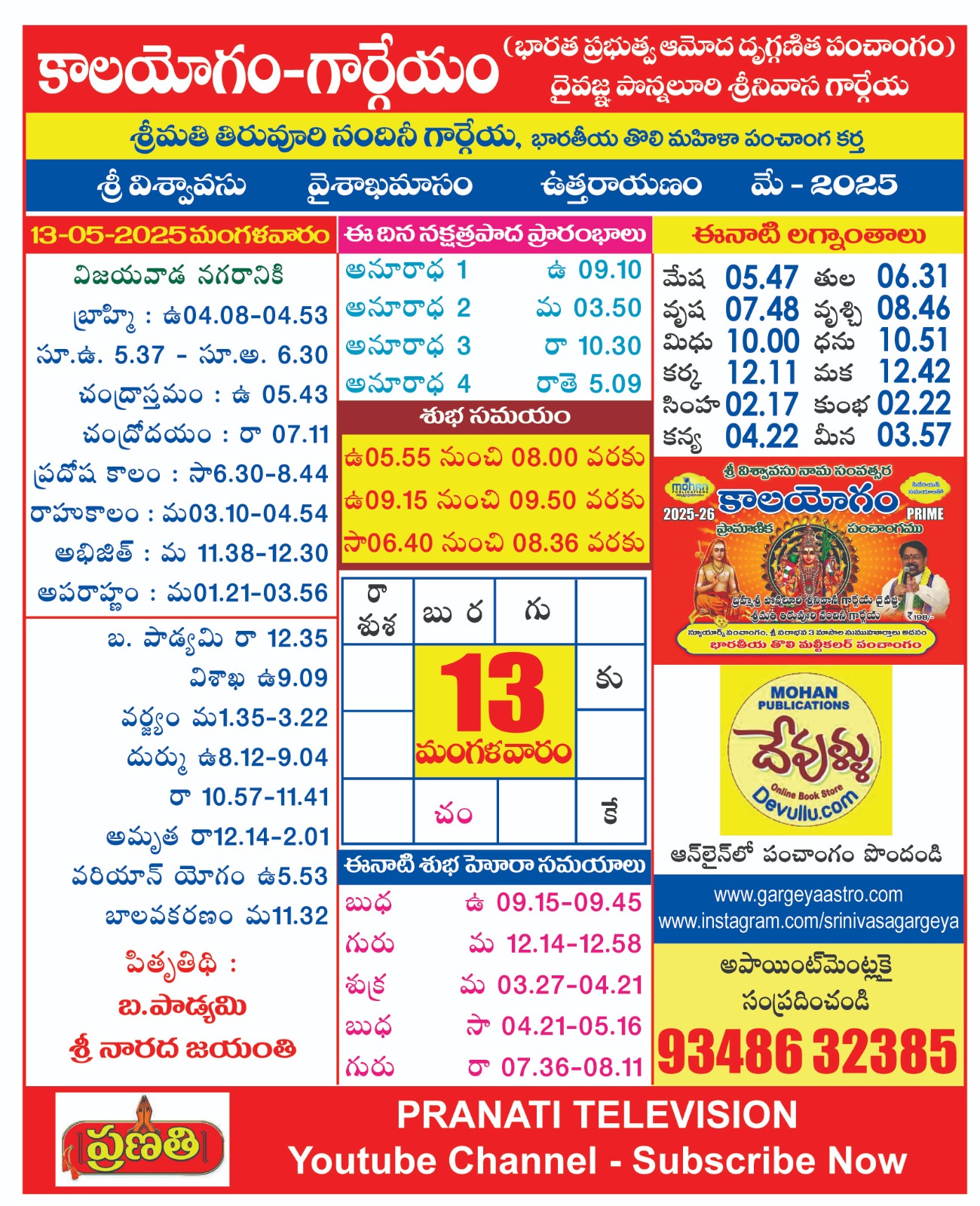 BlogsLatestNitya Panchangam Panchangam on 13 MAY 2025 by gargeyaastro May 9, 2025 written by gargeyaastro May 9, 2025 241 0 comment 0 FacebookTwitterPinterestEmail gargeyaastro previous post Panchangam on 12 MAY 2025 next post Panchangam on 14 MAY 2025 You may also like Pooja timings for 18,20,21 october 2025 October 16, 2025 DIWALI which day in 2025 ? October 13, 2025 Panchangam from 11-15 0ct 2025 October 13, 2025 panchangam from 6-10 2025 October 3, 2025 2 october 2025 Dasara timings for all states September 30, 2025 For Appointments please contact 8341032385 September 30, 2025 Panchangam from 1-5 october 2025 September 30, 2025 For Appointments please contact 8341032385 September 23, 2025 For Appointments please contact 8341032385 September 23, 2025 2025-2033 these 8 years changes in the world September 23, 2025 Leave a Comment Cancel Reply Save my name, email, and website in this browser for the next time I comment.