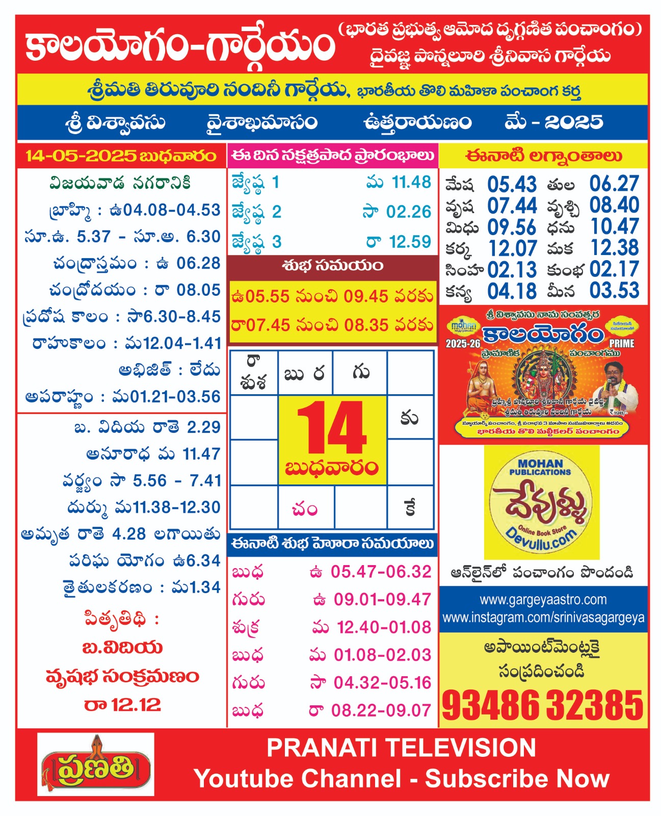 AstrologyLatestNitya Panchangam Panchangam on 14 MAY 2025 by gargeyaastro May 9, 2025 written by gargeyaastro May 9, 2025 204 0 comment 0 FacebookTwitterPinterestEmail gargeyaastro previous post Panchangam on 13 MAY 2025 next post Panchangam on 15 MAY 2025 You may also like Pooja timings for 18,20,21 october 2025 October 16, 2025 DIWALI which day in 2025 ? October 13, 2025 Panchangam from 11-15 0ct 2025 October 13, 2025 panchangam from 6-10 2025 October 3, 2025 2 october 2025 Dasara timings for all states September 30, 2025 For Appointments please contact 8341032385 September 30, 2025 Panchangam from 1-5 october 2025 September 30, 2025 For Appointments please contact 8341032385 September 23, 2025 For Appointments please contact 8341032385 September 23, 2025 2025-2033 these 8 years changes in the world September 23, 2025 Leave a Comment Cancel Reply Save my name, email, and website in this browser for the next time I comment.