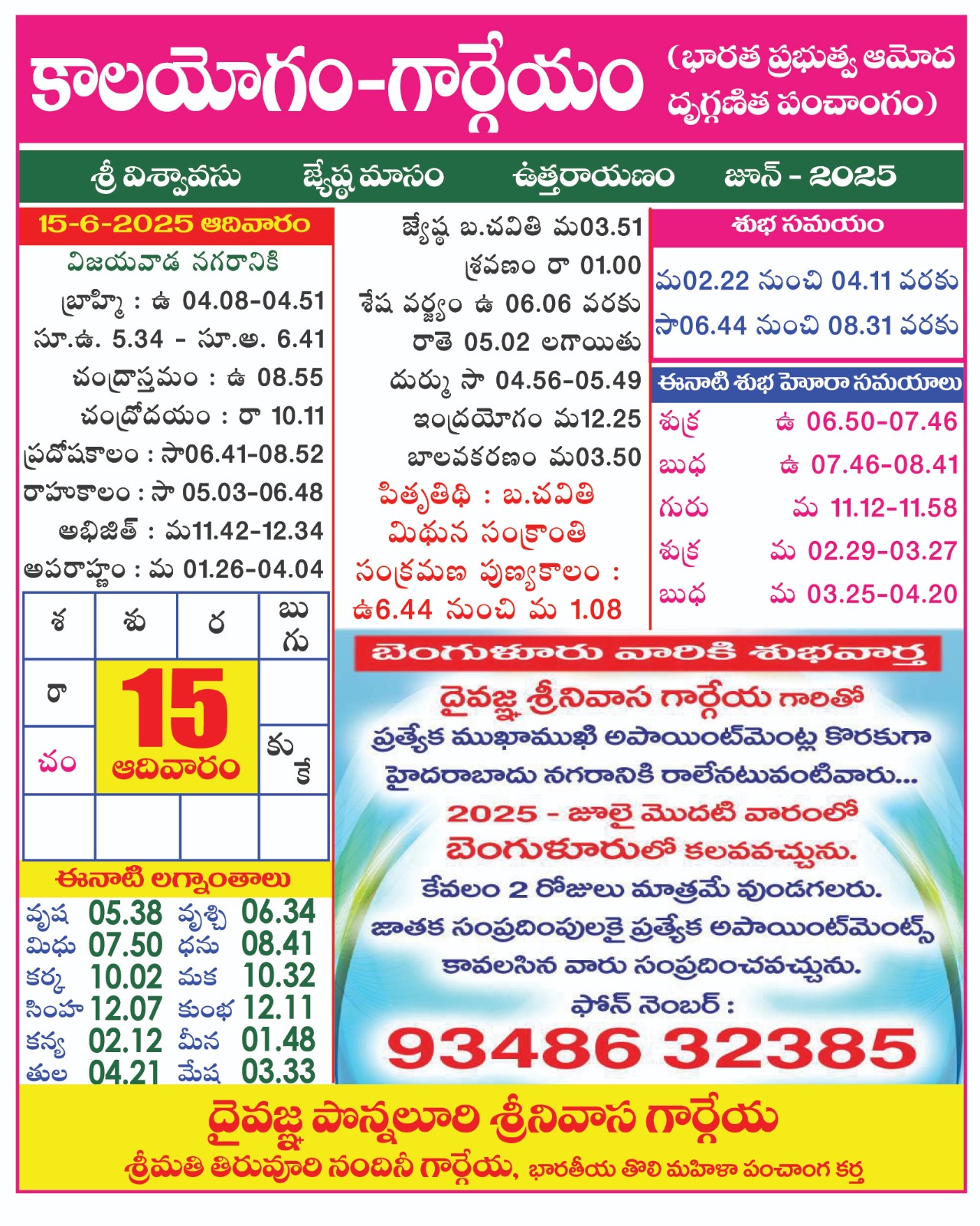 AstrologyLatestNitya Panchangam Panchangam on 15 June 2025 by gargeyaastro June 14, 2025 written by gargeyaastro June 14, 2025 189 0 comment 0 FacebookTwitterPinterestEmail gargeyaastro previous post Panchangam on 14 June 2025 next post Panchangam on 16 June 2025 You may also like Pooja timings for 18,20,21 october 2025 October 16, 2025 DIWALI which day in 2025 ? October 13, 2025 Panchangam from 11-15 0ct 2025 October 13, 2025 panchangam from 6-10 2025 October 3, 2025 2 october 2025 Dasara timings for all states September 30, 2025 For Appointments please contact 8341032385 September 30, 2025 Panchangam from 1-5 october 2025 September 30, 2025 For Appointments please contact 8341032385 September 23, 2025 For Appointments please contact 8341032385 September 23, 2025 2025-2033 these 8 years changes in the world September 23, 2025 Leave a Comment Cancel Reply Save my name, email, and website in this browser for the next time I comment.