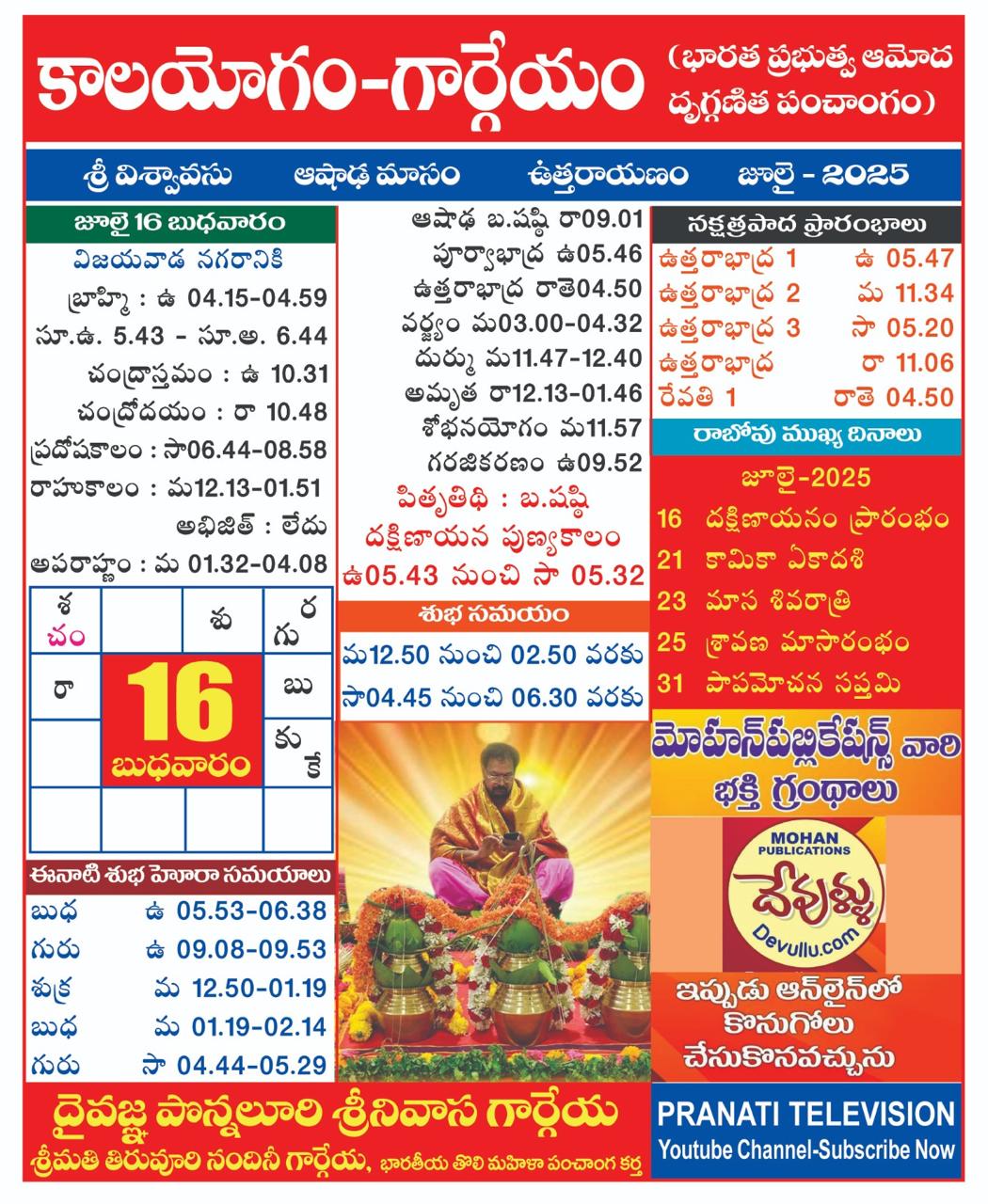 AstrologyLatestNitya Panchangam Panchangam on 16 July 2025 by gargeyaastro July 23, 2025 written by gargeyaastro July 23, 2025 166 0 comment 0 FacebookTwitterPinterestEmail gargeyaastro previous post Panchangam on 15 July 2025 next post Panchangam on 17 July 2025 You may also like Pooja timings for 18,20,21 october 2025 October 16, 2025 DIWALI which day in 2025 ? October 13, 2025 Panchangam from 11-15 0ct 2025 October 13, 2025 panchangam from 6-10 2025 October 3, 2025 2 october 2025 Dasara timings for all states September 30, 2025 For Appointments please contact 8341032385 September 30, 2025 Panchangam from 1-5 october 2025 September 30, 2025 For Appointments please contact 8341032385 September 23, 2025 For Appointments please contact 8341032385 September 23, 2025 2025-2033 these 8 years changes in the world September 23, 2025 Leave a Comment Cancel Reply Save my name, email, and website in this browser for the next time I comment.