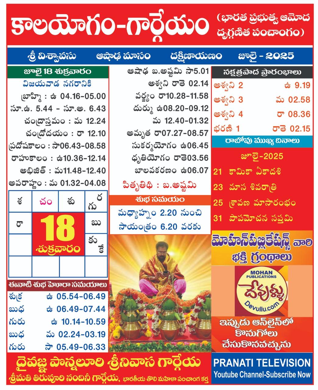 AstrologyLatestNitya Panchangam Panchangam on 18 July 2025 by gargeyaastro July 23, 2025 written by gargeyaastro July 23, 2025 125 0 comment 0 FacebookTwitterPinterestEmail gargeyaastro previous post Panchangam on 17 July 2025 next post Panchangam on 19 July 2025 You may also like Pooja timings for 18,20,21 october 2025 October 16, 2025 DIWALI which day in 2025 ? October 13, 2025 Panchangam from 11-15 0ct 2025 October 13, 2025 panchangam from 6-10 2025 October 3, 2025 2 october 2025 Dasara timings for all states September 30, 2025 For Appointments please contact 8341032385 September 30, 2025 Panchangam from 1-5 october 2025 September 30, 2025 For Appointments please contact 8341032385 September 23, 2025 For Appointments please contact 8341032385 September 23, 2025 2025-2033 these 8 years changes in the world September 23, 2025 Leave a Comment Cancel Reply Save my name, email, and website in this browser for the next time I comment.