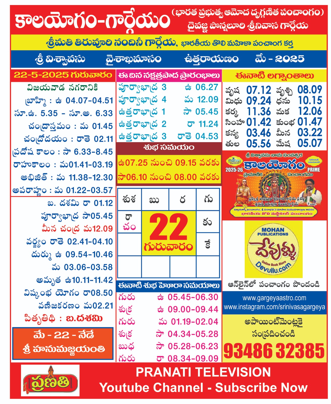 AstrologyLatestNitya Panchangam Panchangam on 22 MAY 2025 by gargeyaastro May 22, 2025 written by gargeyaastro May 22, 2025 218 0 comment 0 FacebookTwitterPinterestEmail gargeyaastro previous post Panchangam on 21 MAY 2025 next post Panchangam on 23 MAY 2025 You may also like Pooja timings for 18,20,21 october 2025 October 16, 2025 DIWALI which day in 2025 ? October 13, 2025 Panchangam from 11-15 0ct 2025 October 13, 2025 panchangam from 6-10 2025 October 3, 2025 2 october 2025 Dasara timings for all states September 30, 2025 For Appointments please contact 8341032385 September 30, 2025 Panchangam from 1-5 october 2025 September 30, 2025 For Appointments please contact 8341032385 September 23, 2025 For Appointments please contact 8341032385 September 23, 2025 2025-2033 these 8 years changes in the world September 23, 2025 Leave a Comment Cancel Reply Save my name, email, and website in this browser for the next time I comment.