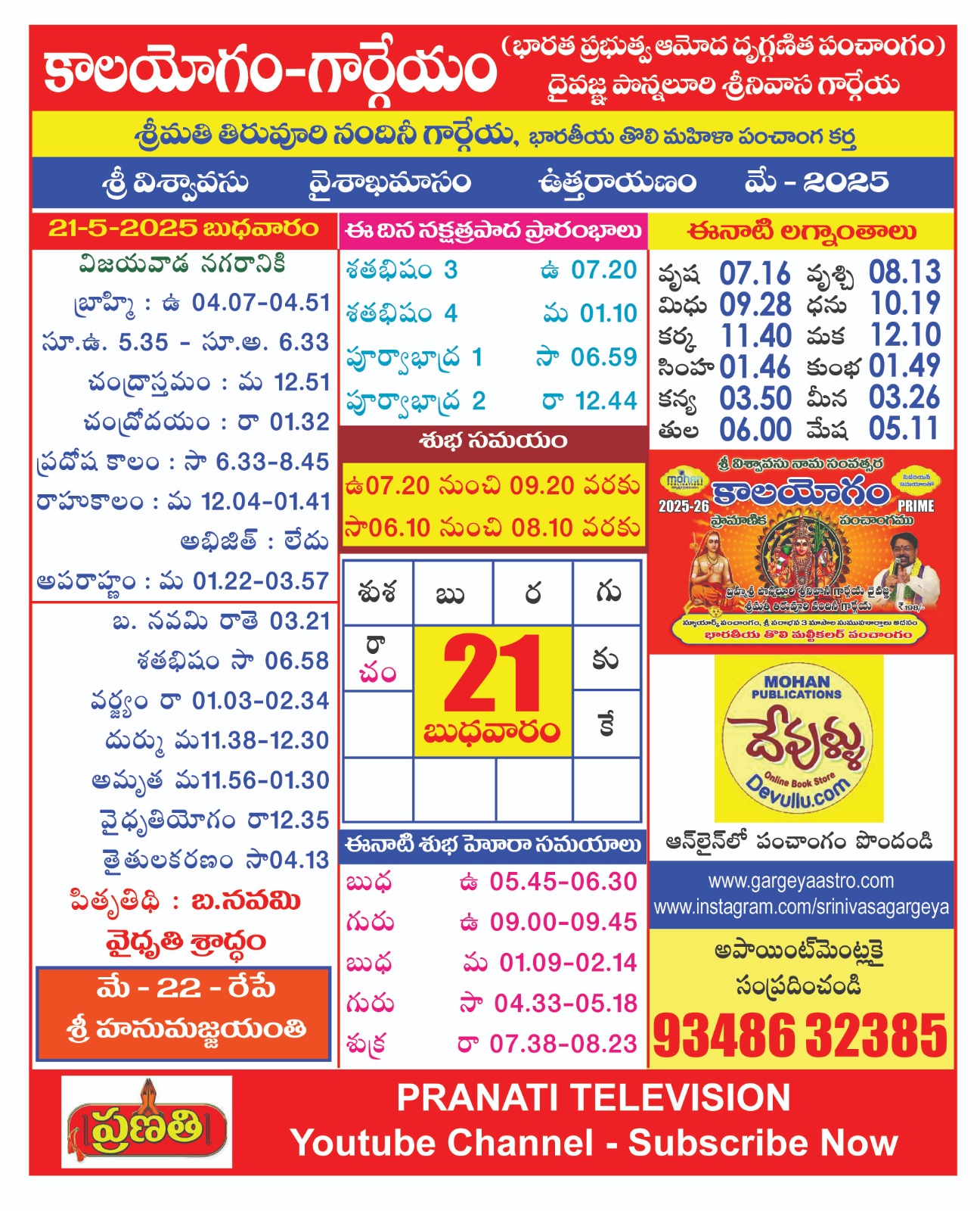 AstrologyLatestNitya Panchangam Panchangam on 21 MAY 2025 by gargeyaastro May 19, 2025 written by gargeyaastro May 19, 2025 320 0 comment 0 FacebookTwitterPinterestEmail gargeyaastro previous post Panchangam on 20 MAY 2025 next post Panchangam on 22 MAY 2025 You may also like Pooja timings for 18,20,21 october 2025 October 16, 2025 DIWALI which day in 2025 ? October 13, 2025 Panchangam from 11-15 0ct 2025 October 13, 2025 panchangam from 6-10 2025 October 3, 2025 2 october 2025 Dasara timings for all states September 30, 2025 For Appointments please contact 8341032385 September 30, 2025 Panchangam from 1-5 october 2025 September 30, 2025 For Appointments please contact 8341032385 September 23, 2025 For Appointments please contact 8341032385 September 23, 2025 2025-2033 these 8 years changes in the world September 23, 2025 Leave a Comment Cancel Reply Save my name, email, and website in this browser for the next time I comment.