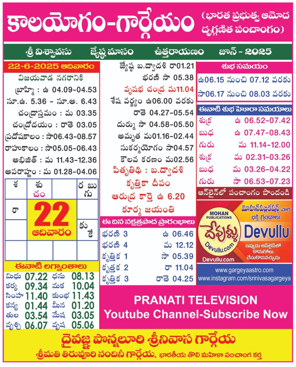 AstrologyLatestNitya Panchangam Panchangam on 22 June 2025 by gargeyaastro June 30, 2025 written by gargeyaastro June 30, 2025 219 0 comment 0 FacebookTwitterPinterestEmail gargeyaastro previous post ALL ARE WELCOME ON 25 TH JUNE 2025 next post Panchangam on 23 June 2025 You may also like గోదావరి పుష్కరాలకు ఇదే ఖచ్చిత తేదీ December 16, 2025 శ్రీ చంద్రబాబు నాయుడు గారికి ధన్యవాదములు December 16, 2025 ప్రపంచవ్యాప్తంగా 2 ఆగస్టు 2026 నుంచి భవిష్య ఉద్యోగాలకు గండి... December 16, 2025 please call to 83410 32385 విజయవాడ 2026 జనవరి... December 16, 2025 Panchangam From Dec 11-15 2025 December 14, 2025 Panchangam From Dec 6-10 2025 December 6, 2025 ప్రజలను గందరగోళంలోకి నెట్టిన ఆంధ్రప్రదేశ్ ప్రభుత్వ పండుగల లిస్ట్ December 6, 2025 కేంద్ర ప్రభుత్వ సెలవుల క్యాలెండర్ విడుదలైంది December 6, 2025 కేంద్ర ప్రభుత్వ సెలవుల క్యాలెండర్ విడుదలైంది December 6, 2025 పంచాంగాలలో ఇచ్చే ఆదాయ వ్యయ నిర్ణయాలనేవి ఓ గుడ్డి పద్ధతి December 6, 2025 Leave a Comment Cancel Reply Save my name, email, and website in this browser for the next time I comment.