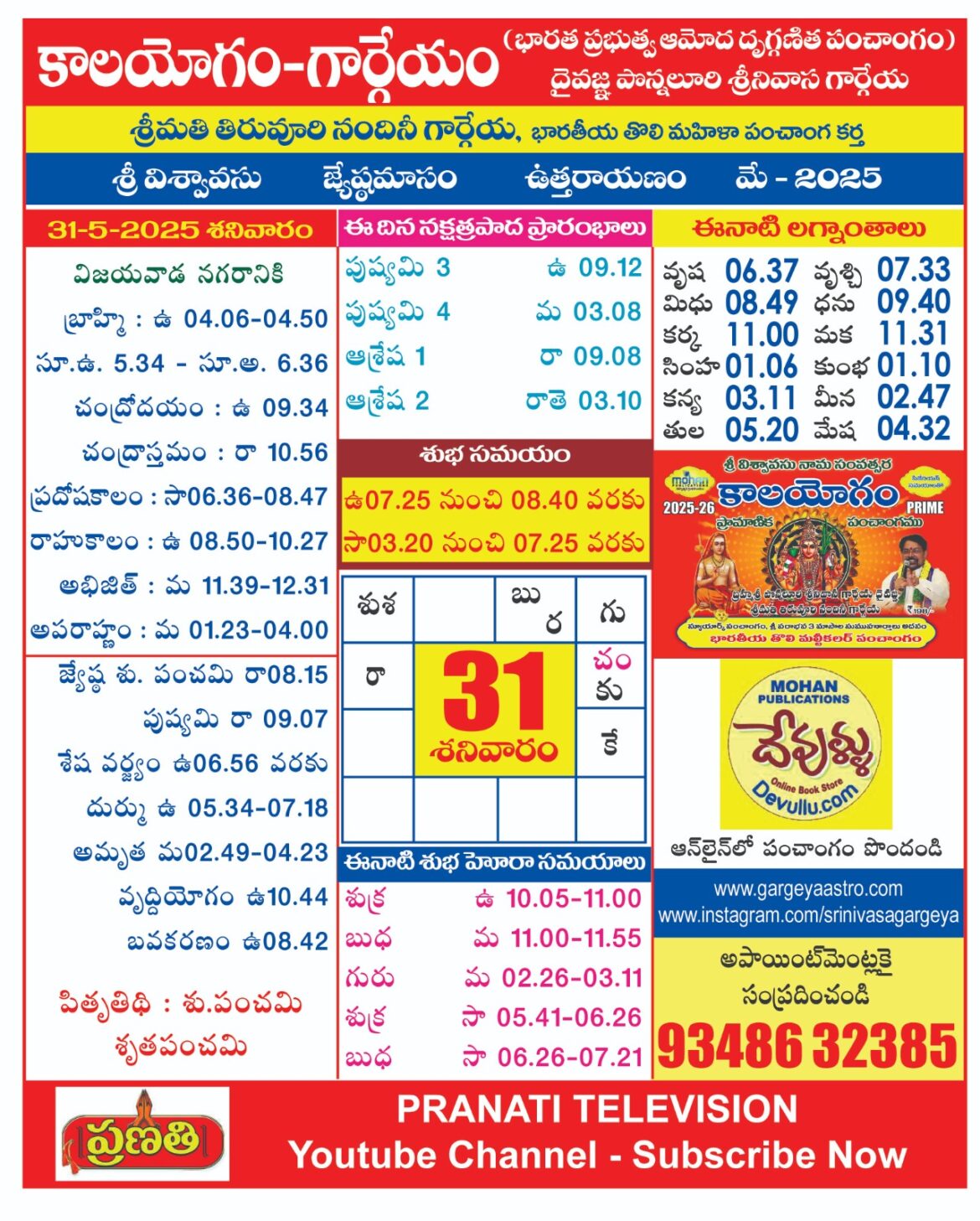 AstrologyLatestNitya Panchangam Panchangam on 31 MAY 2025 by gargeyaastro May 28, 2025 written by gargeyaastro May 28, 2025 297 0 comment 0 FacebookTwitterPinterestEmail gargeyaastro previous post Panchangam on 30 MAY 2025 next post Panchangam on 01 JUNE 2025 You may also like గోదావరి పుష్కరాలకు ఇదే ఖచ్చిత తేదీ December 16, 2025 శ్రీ చంద్రబాబు నాయుడు గారికి ధన్యవాదములు December 16, 2025 ప్రపంచవ్యాప్తంగా 2 ఆగస్టు 2026 నుంచి భవిష్య ఉద్యోగాలకు గండి... December 16, 2025 please call to 83410 32385 విజయవాడ 2026 జనవరి... December 16, 2025 Panchangam From Dec 11-15 2025 December 14, 2025 Panchangam From Dec 6-10 2025 December 6, 2025 ప్రజలను గందరగోళంలోకి నెట్టిన ఆంధ్రప్రదేశ్ ప్రభుత్వ పండుగల లిస్ట్ December 6, 2025 కేంద్ర ప్రభుత్వ సెలవుల క్యాలెండర్ విడుదలైంది December 6, 2025 కేంద్ర ప్రభుత్వ సెలవుల క్యాలెండర్ విడుదలైంది December 6, 2025 పంచాంగాలలో ఇచ్చే ఆదాయ వ్యయ నిర్ణయాలనేవి ఓ గుడ్డి పద్ధతి December 6, 2025 Leave a Comment Cancel Reply Save my name, email, and website in this browser for the next time I comment.