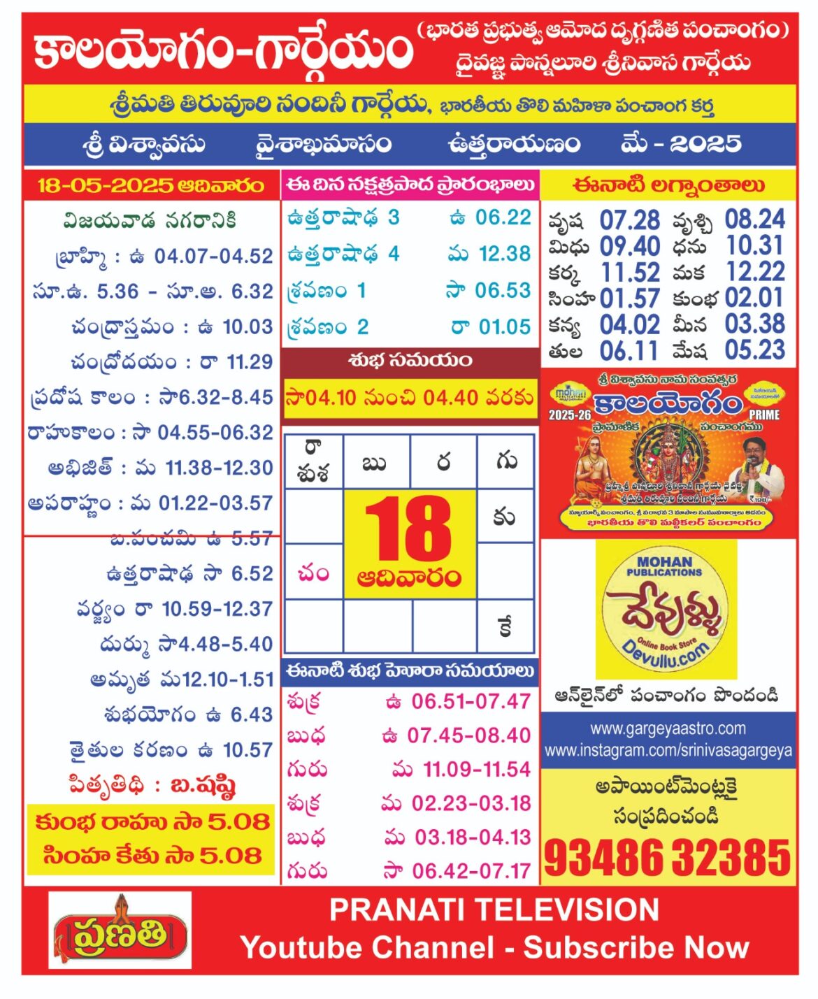 AstrologyLatestNitya Panchangam Panchangam on MAY 18 2025 by gargeyaastro May 16, 2025 written by gargeyaastro May 16, 2025 359 0 comment 0 FacebookTwitterPinterestEmail gargeyaastro previous post Panchangam on MAY 17 2025 next post Panchangam on 19 MAY 2025 You may also like గోదావరి పుష్కరాలకు ఇదే ఖచ్చిత తేదీ December 16, 2025 శ్రీ చంద్రబాబు నాయుడు గారికి ధన్యవాదములు December 16, 2025 ప్రపంచవ్యాప్తంగా 2 ఆగస్టు 2026 నుంచి భవిష్య ఉద్యోగాలకు గండి... December 16, 2025 please call to 83410 32385 విజయవాడ 2026 జనవరి... December 16, 2025 Panchangam From Dec 11-15 2025 December 14, 2025 Panchangam From Dec 6-10 2025 December 6, 2025 ప్రజలను గందరగోళంలోకి నెట్టిన ఆంధ్రప్రదేశ్ ప్రభుత్వ పండుగల లిస్ట్ December 6, 2025 కేంద్ర ప్రభుత్వ సెలవుల క్యాలెండర్ విడుదలైంది December 6, 2025 కేంద్ర ప్రభుత్వ సెలవుల క్యాలెండర్ విడుదలైంది December 6, 2025 పంచాంగాలలో ఇచ్చే ఆదాయ వ్యయ నిర్ణయాలనేవి ఓ గుడ్డి పద్ధతి December 6, 2025 Leave a Comment Cancel Reply Save my name, email, and website in this browser for the next time I comment.