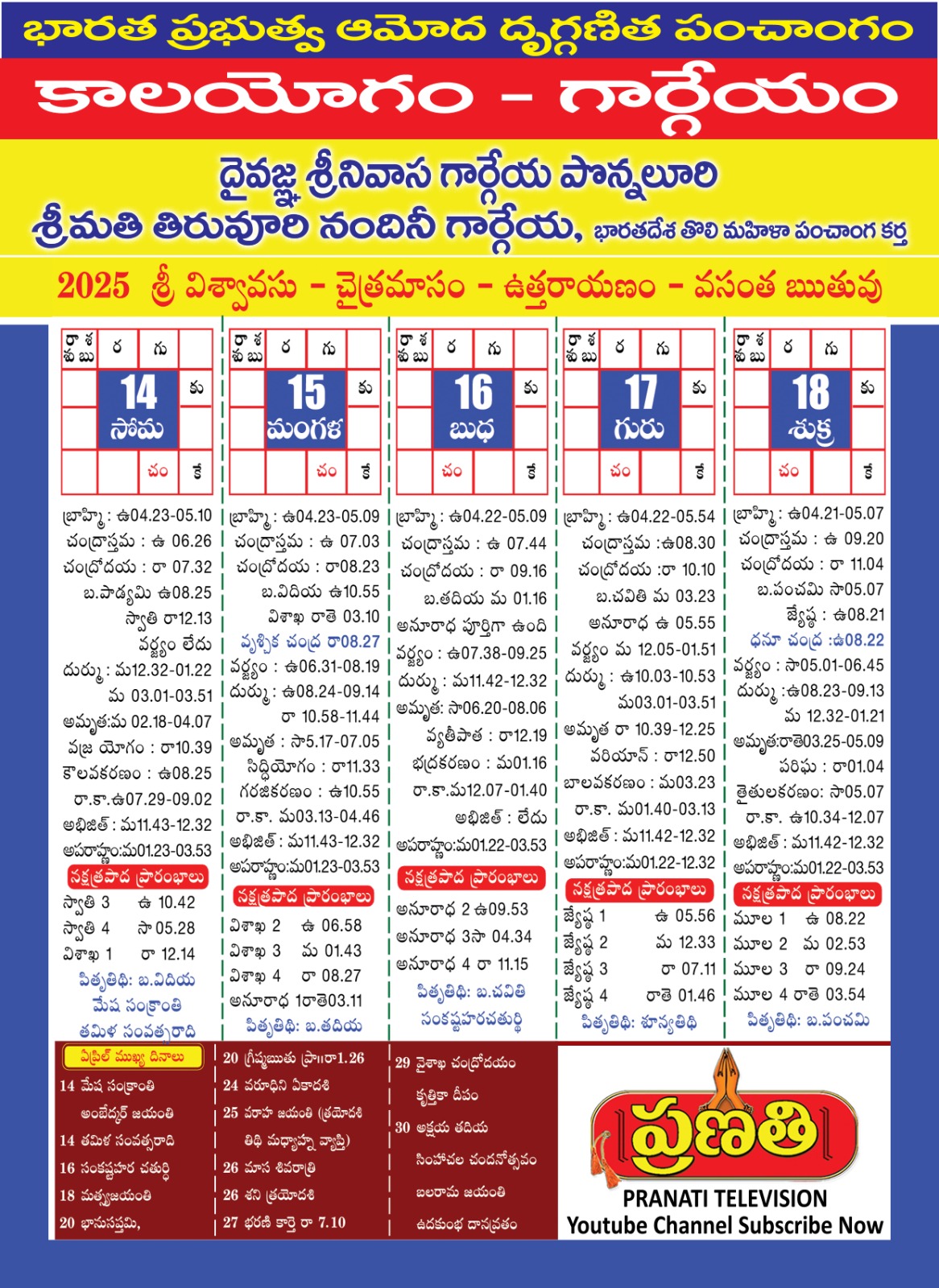 AstrologyLatestNitya Panchangam Weekly panchangam 2025 April 14-18 by gargeyaastro April 14, 2025 written by gargeyaastro April 14, 2025 371 0 comment 0 FacebookTwitterPinterestEmail gargeyaastro previous post మీకు మీరే పండితులైపోవాలి next post ప్రపంచ వ్యాప్త తెలుగు ప్రజలందరికీ శుభవార్త You may also like Pooja timings for 18,20,21 october 2025 October 16, 2025 DIWALI which day in 2025 ? October 13, 2025 Panchangam from 11-15 0ct 2025 October 13, 2025 panchangam from 6-10 2025 October 3, 2025 2 october 2025 Dasara timings for all states September 30, 2025 For Appointments please contact 8341032385 September 30, 2025 Panchangam from 1-5 october 2025 September 30, 2025 For Appointments please contact 8341032385 September 23, 2025 For Appointments please contact 8341032385 September 23, 2025 2025-2033 these 8 years changes in the world September 23, 2025 Leave a Comment Cancel Reply Save my name, email, and website in this browser for the next time I comment.